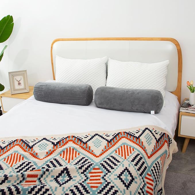 - 2 PACK ROUND PILLOWS FOR COUCH: Measuring 24 x 7.87 inches, our cylinder pillows are perfect to use as decorative pillows for couch, sofa and bed. Each small round pillow comes with luxury velvet cover with different colors for choice, adding extra elegance to your bed and living room