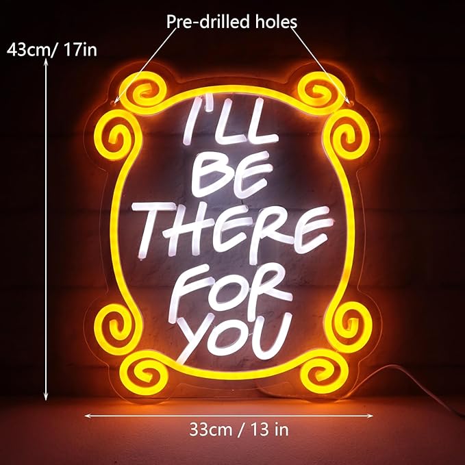- 【Custom Neon Sign】Captivating "I'll Be There For You" Design: Illuminate your space with this captivating neon sign featuring the iconic phrase "I'll Be There For You." Perfect for friends, couples, or anyone who appreciates the meaning behind it.
