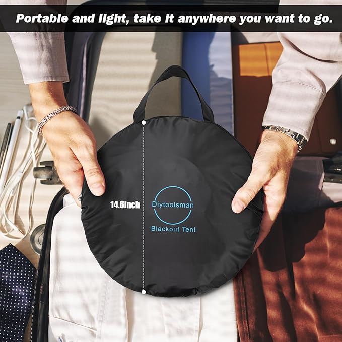 - Foldable and Compact: Our sleeping tent easily folds down to a compact 16-inch diameter, perfect for slipping into your backpack or suitcase. Instant setup, no assembly required. Ideal for shared spaces, hotels, dorms, travel, and even when you're crashing at someone else's place