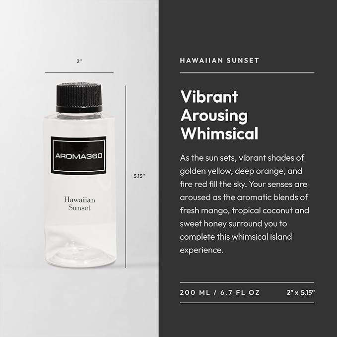 Aroma360 | Hawaiian Sunset Oil Blend | Hotel Inspired Luxury Essential Oil Diffuser | Aromatherapy Scent Diffuser Oil | Mango, Coconut and Vanilla 6.7 fl oz, 200 mL