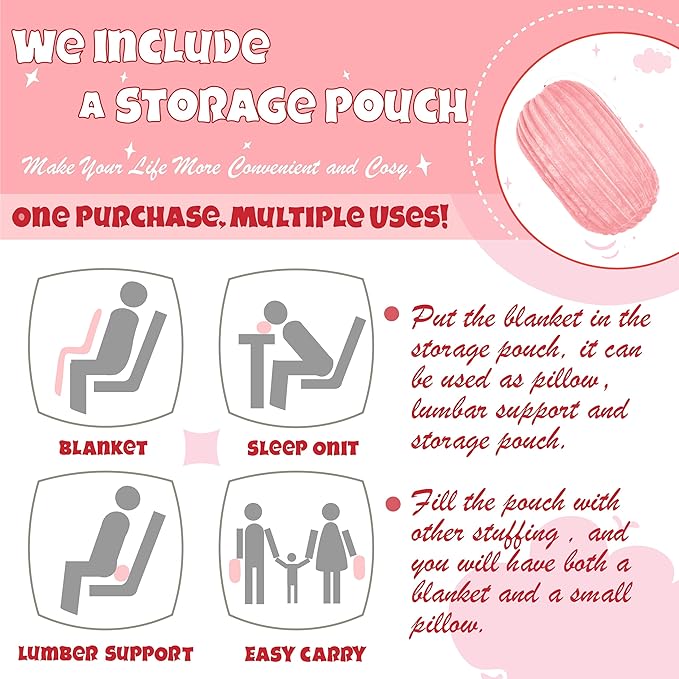 Bnuitland Light Pink Flannel Throw with Storage Pouch,300GSM Super Soft Fleece Stripe Pattern Sofa Blanket for Adults and Kids, Lightweight Cozy Bed Throw for Home Decor All Season