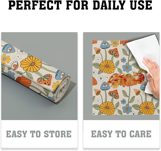 - ★【Double-Sided Printing】:The washable placemats are double-sided printing, high-definition printing technology, vivid colors, and clear patterns. These Retro Boho Floral plate mats with 70s Vintage Cute Abstract Mushrooms Funpatterns are colorful and clear, adding more fun to your home.