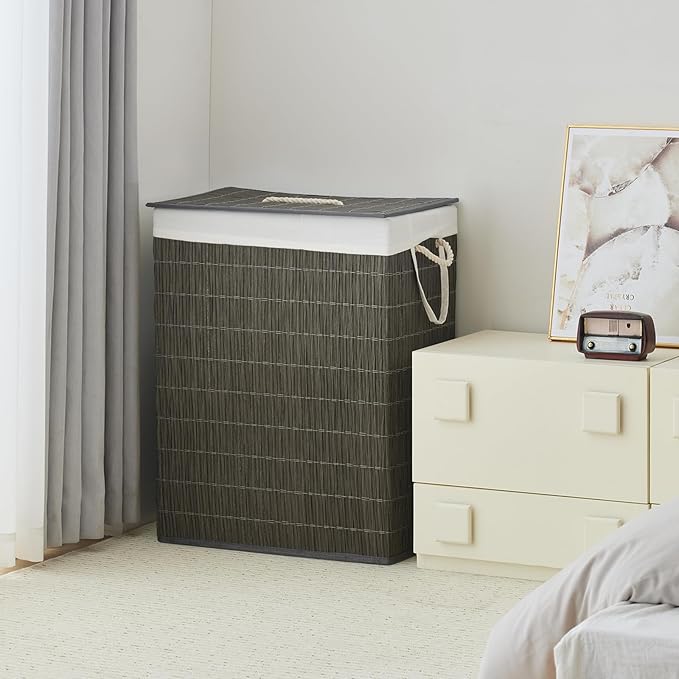 - 2 Removable Liners with Handles: This Handwoven Rattan laundry basket comes with 2 washable Liners with handles. The inner bag is divided into two or three area for different kind clothes such as darks, lights clothing for easy washing