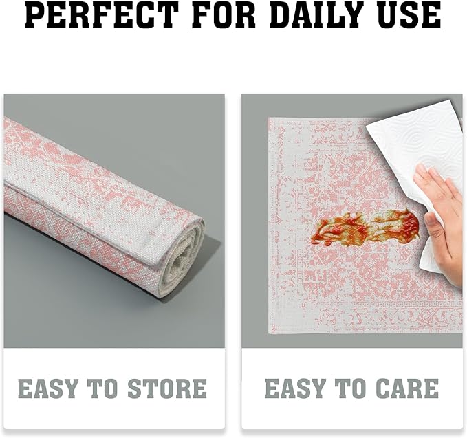 - ★【Double-Sided Printing】:The washable placemats are double-sided printing, high-definition printing technology, vivid colors, and clear patterns. These Gray Pink Boho plate mats with Ethnic Bohemian Carpet patterns are colorful and clear, provide you a comfortable, relaxed, natural environment.