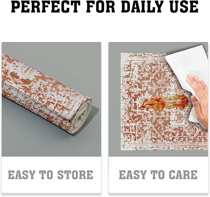 - ★【Double-Sided Printing】:The washable placemats are double-sided printing, high-definition printing technology, vivid colors, and clear patterns. These Gray Burnt Orange Boho plate mats with Ethnic Bohemian Carpet patterns are colorful and clear, provide you a comfortable, relaxed, natural environment.
