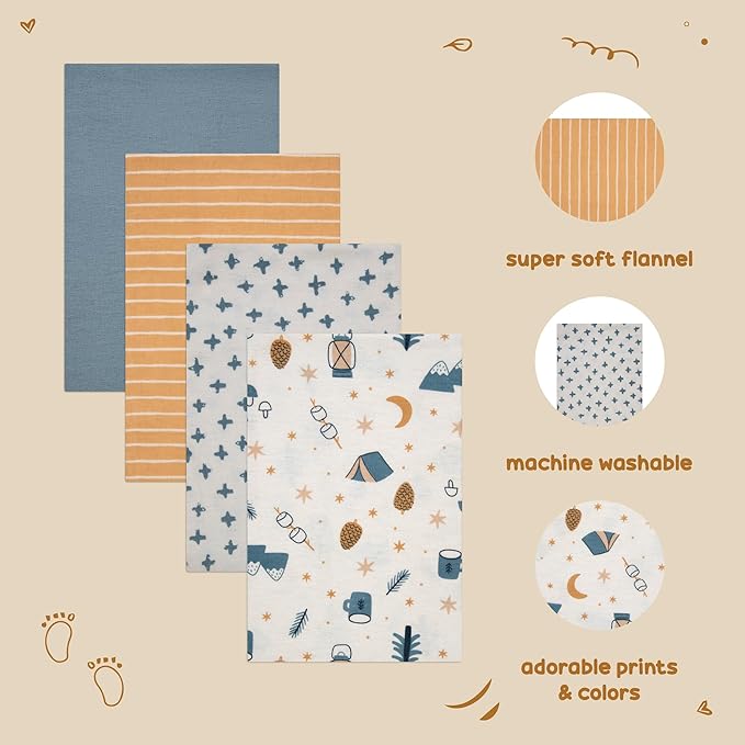 - Super Cute Fun Designs: Delight in the adorable patterns and designs featured on these 4-Pack Unisex Baby Cotton Flannel Receiving Blankets. From playful animals to charming prints, each blanket adds a touch of whimsy and joy to your baby's nursery.