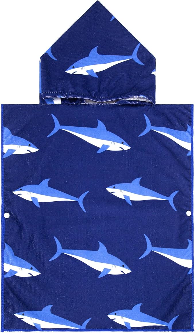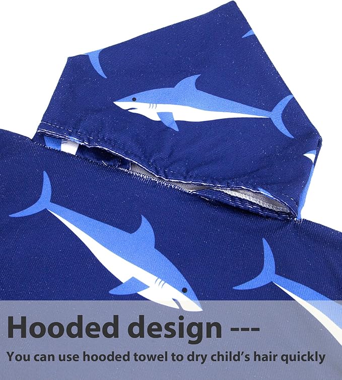 MissShorthair Kids Toddler Poncho Towels, Hooded Beach Towel for Girl&Boy, Surf Poncho Swim Changing Robe Microfiber Bath Towel for 1-3 Years Blue Shark