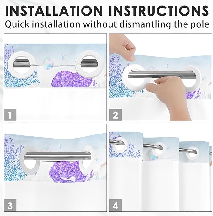 - [ No Hook Shower Curtain Set ]: Install in 20 seconds without the hassle of annoying and messy hooks, and no need to remove the rod! Made from 100% polyester,our shower curtain is not only waterproof and stain-resistant but also dries quickly.