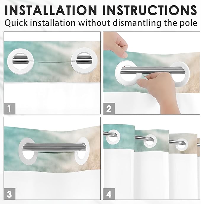 - [ No Hook Shower Curtain Set ]: Install in 20 seconds without the hassle of annoying and messy hooks, and no need to remove the rod! Made from 100% polyester,our shower curtain is not only waterproof and stain-resistant but also dries quickly.
