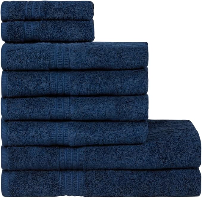 HOMELOVER 8 Piece Towel Set - 100% Organic Cotton, 2 Bath Towels, 4 Hand Towels, 2 Washcloths - 500 GSM, Hotel & Spa Quality, Soft, Quick Dry, Highly Absorbent Bathroom Essentials (Deep Sea Blue)
