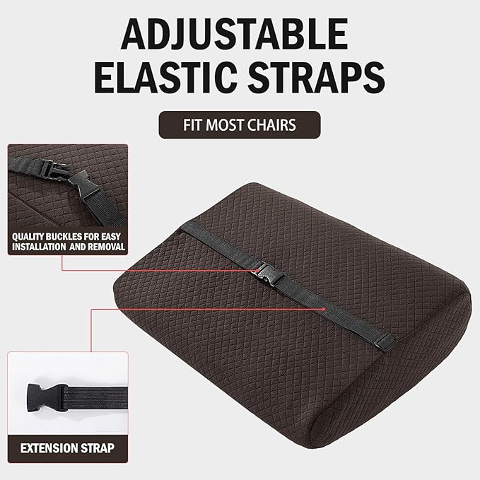 MABOZOO Memory Foam Back Support Cushion for Recliner Chair,Lumbar Support Pillow for Elderly,Extra Large Lumbar Support Pillow with Extension Straps,Dark Coffee