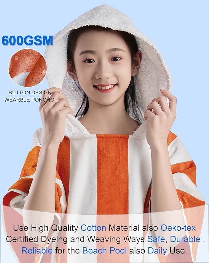 - Large Size: This oversized hooded beach pool towel poncho measures a full length of 74"x37" and folds to a compact 37"x37" (excluding the hood), It is specifically designed to comfortably fit big kids (8 years old and up) and teenagers
