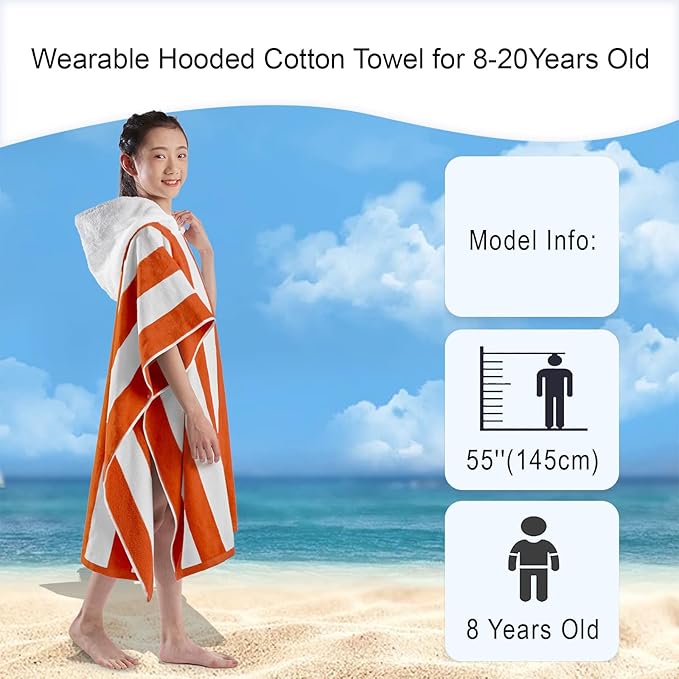- Timeless Elegance:Our Cabana Striped hooded towel showcases a stylish and timeless design, With its refined simplicity and jacquard process, this towel effortlessly complements any beach or pool outfit, adding a touch of sophisticated elegance to your summer style
