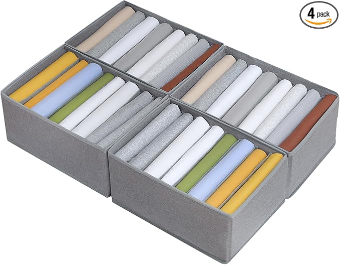 Qozary 4 Pack Drawer Organizers for Clothing, 8 Grids Foldable Closet Organizers and Storage Bins for Bedroom, Dresser Organizer Boxes for Thin T-shirts, Tank Tops