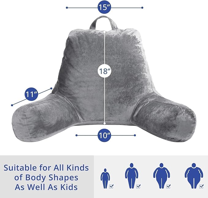 Sasttie Reading Pillow for Sitting in Bed Adult, Velvet Back Pillow for Bed Sitting Up, Backrest Back Support Chair Pillow, College Dorm Essentials for Girls and Boys, Dark Grey