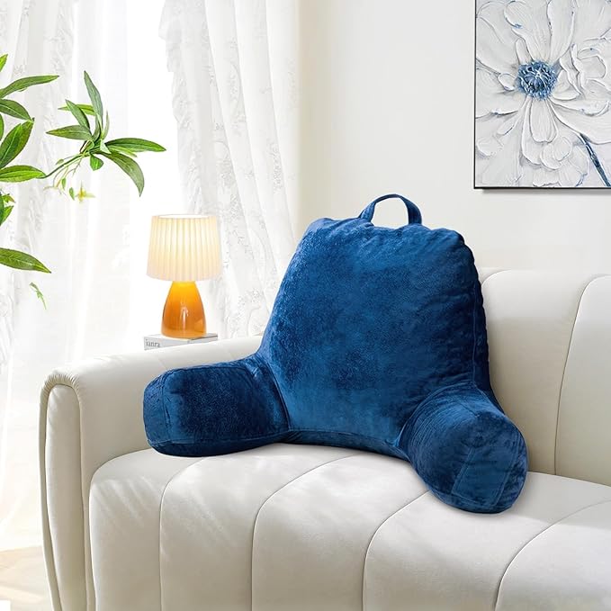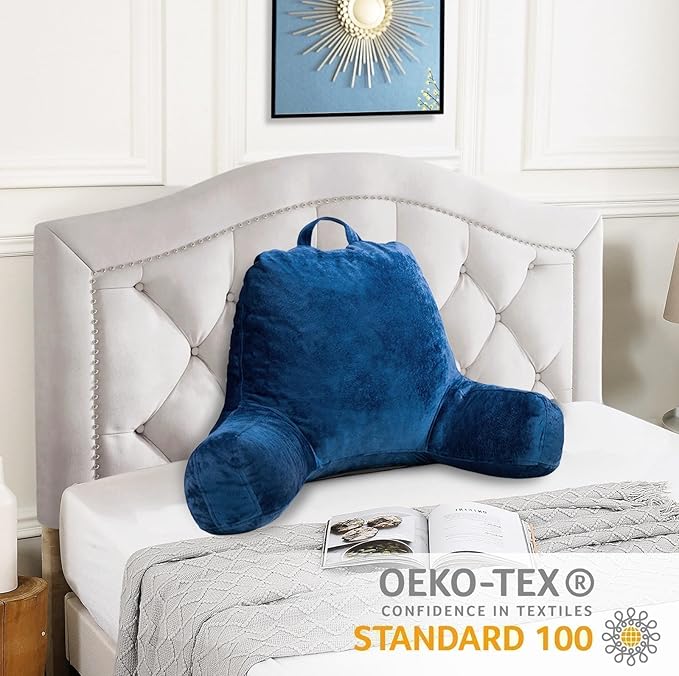 Sasttie Reading Pillow for Sitting in Bed Adult, Velvet Back Pillow for Bed Sitting Up, Backrest Back Support Chair Pillow, College Dorm Essentials for Girls and Boys, Navy