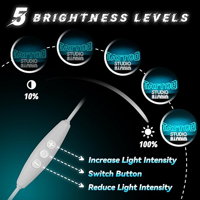 - Dimming Function:Our neon lights are equipped with a dimming system that allows you to adjust five different levels of brightness by using the plus and minus buttons to meet the requirements of different scenarios. The highest level of light provides a bright and enthusiastic atmosphere for your party. The low-level soft light serves as a night light, guarding sleep all night long