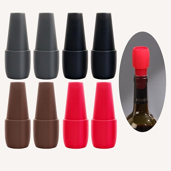 Wine Stopper for Keeping Wine & Champagne Fresh, 8PCS Reusable Silicone Wine Sealer for Wine Bottles, Wine Bottle & Beverage Stopper for Home Use.