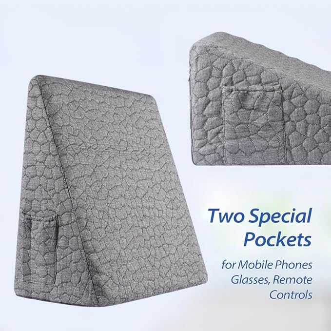 - Enhanced Convenience: Designed with two exclusive pockets for for your phones and glasses or your essentials , this wedge pillow caters to your every need. The zippered cover is made of soft & breathable air layer material, freely removable, and machine washable.