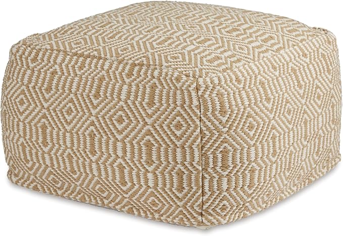 Signature Design by Ashley Adamont Casual Handwoven Geometric Pouf, Beige & White