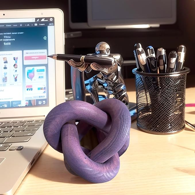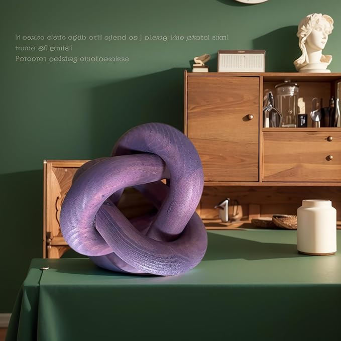 Wood Knot Decor -Coffee Table Decor Shelf Decor Table Books Hand Carved Home Decoration Boho Country Rustic Modern Shabby Chic Style Decor 3 Link Wooden Knot Chain Link Decor (Purple)