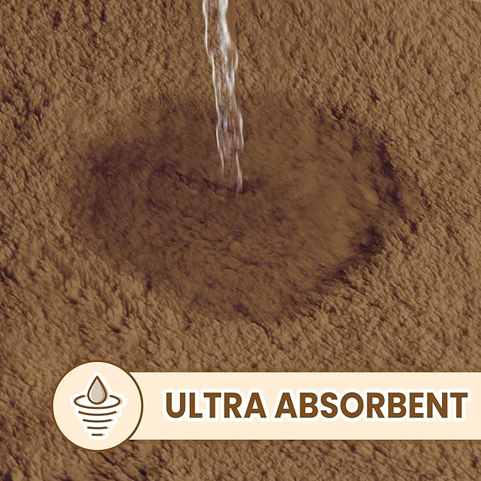 TECHMILLY Fluffy Bathroom Rug Mat 24x17, Absorbent Thick Non Slip Microfiber Mats, Quick Dry Machine Washable Bath Rug for Bathroom Floor, Bathtub and Shower, Tan