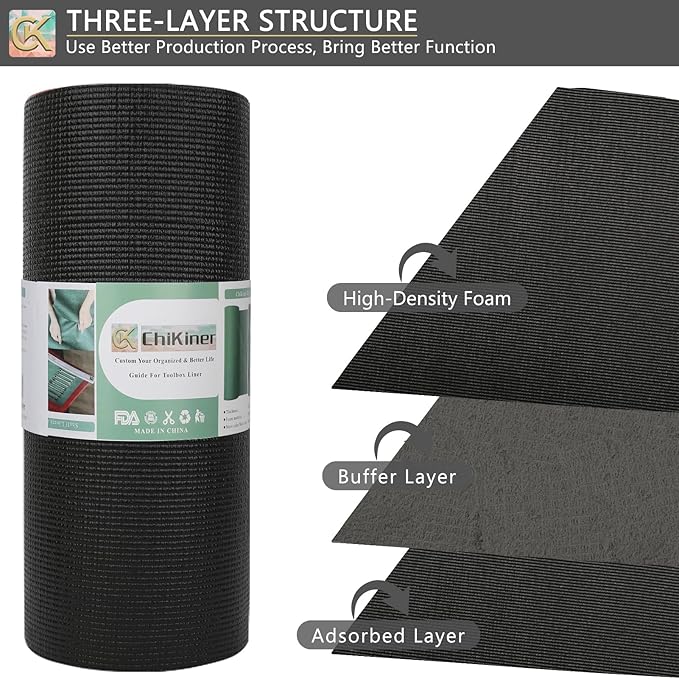 - Multifunctional Application: Tool mats can be used in many different scenarios and applications. They can not only be placed on work surfaces to provide cushioning and anti-slip protection but can also be used in tool boxes to help reduce collisions and wear between tools.More can be used in drawer, cabinet, tool box, kitchen shelf , garage