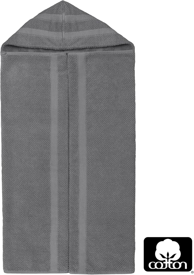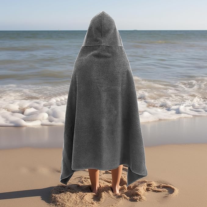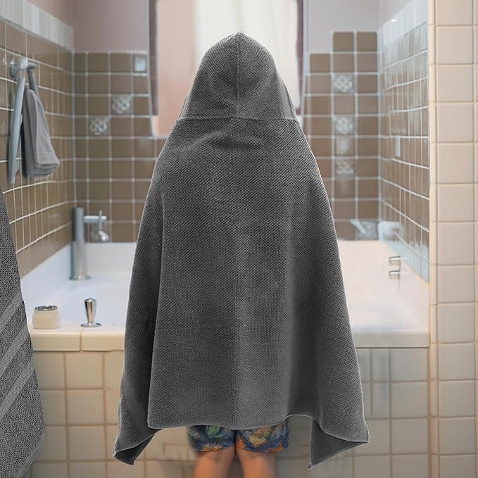 Hooded Bath Towel Wrap - 100% Cotton Popcorn Large Oversized Hooded Kids Towel - Toddler Shower Pool Beach Towel - 600 GSM - Soft Absorbent Quick Dry Easy Care Gift - 30x52 inches - Grey