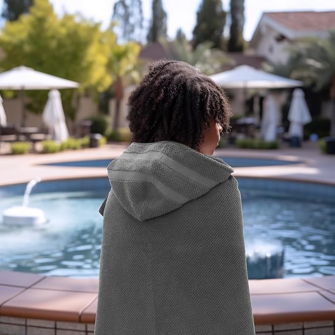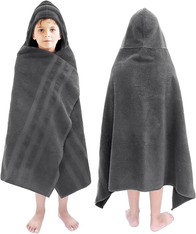 - Perfect For Indoor and Outdoor Use: These hooded luxury towels are woven with a granular rice texture and striped details, adding modern elegance to your bath both kids and parents will love. This bath towel is perfect for indoor and outdoor use as a bathroom, home, beach, or pool accessory. Large enough to let kids keep this towel wrapped comfortably around them.