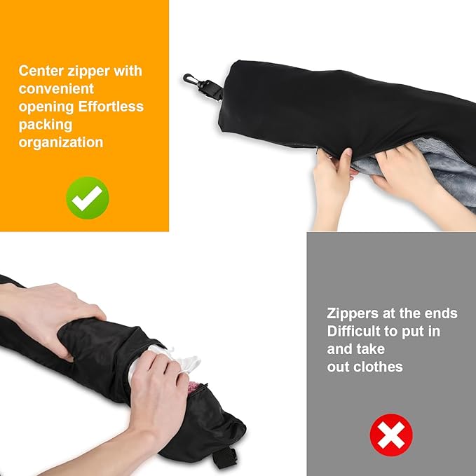 BEE&FLOWER Travel Pillow You Stuff with Clothes, Stuffable Travel Pillow with Adjustable Strap, Stuffable Neck Pillow, Washable, Portable, Ultra-Soft, and Breathable