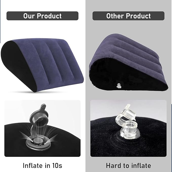 - 💙 Easy Inflation and Portability - Inflate this wedge pillow in less than 30 seconds using just your mouth. Deflation is equally quick and easy - simply press the valve. Its lightweight design and easy storage make it a perfect travel companion for vacations, beach trips, and other activities. It's a practical and portable solution that won't hinder any of your activities.