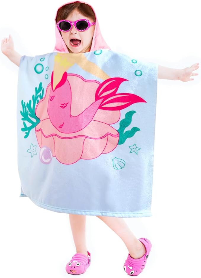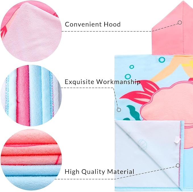 - ?Soft & Skin-friendly Fabric??This cute hooded bath towels for toddlers are made of high quality cotton fiber and polyester, breathable and comfortable. As the best choice of beach towels for kids, the soft cotton towels are thick but lightweight, super absorbent, quick dry and sand free, keeping body dry and warm after swimming or shower.