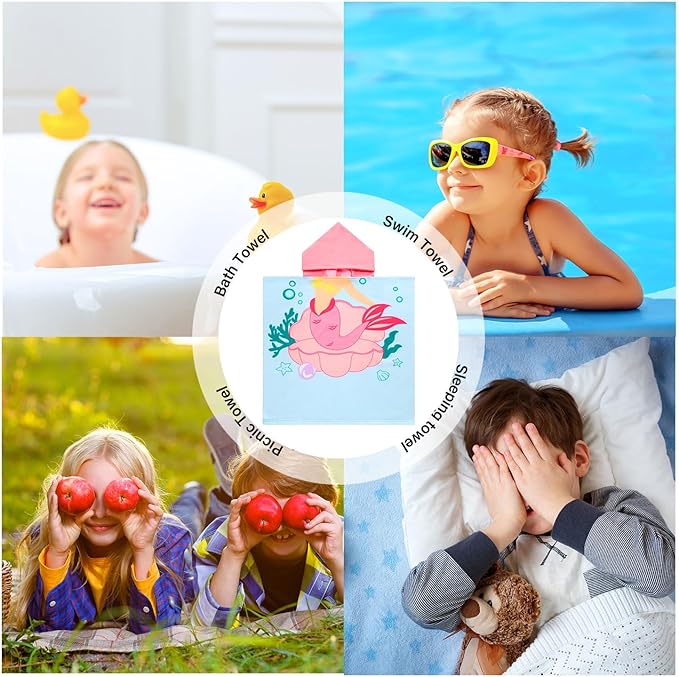 - ?Suitable & Extra Large Size?A large size of 60*120cm ( 24*47 inch) makes this kids hooded towels suitable for toddlers, girls, boys and baby, whose hight is under 140cm (55 inch), allowing plenty room for kids growth. We made the wearable blanket with bright colors and moved the hood to the center, can fully wrap your little child.