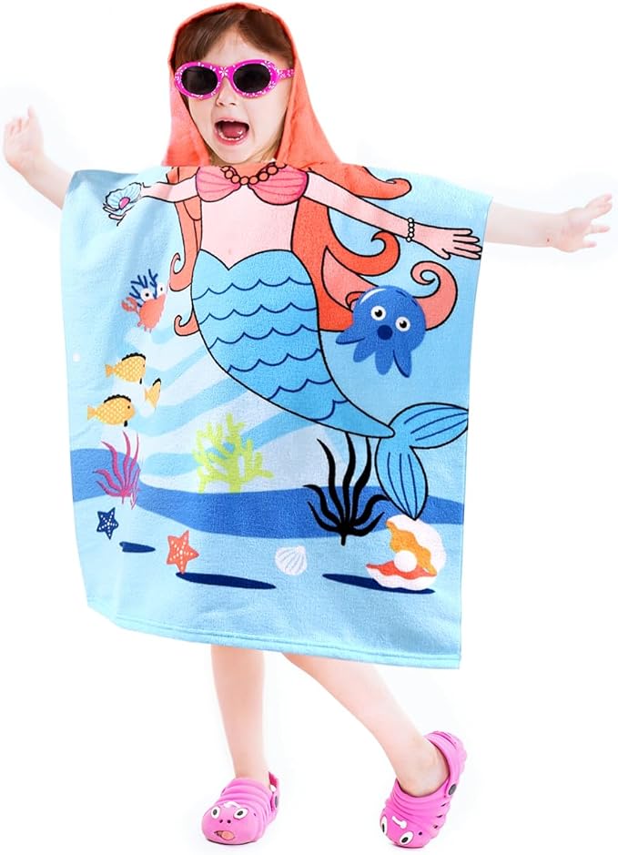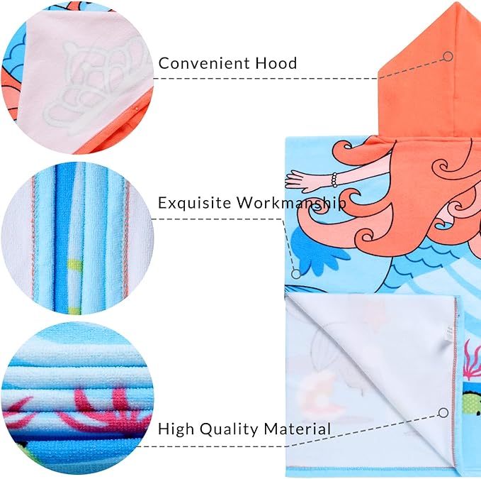 - ?Soft & Skin-friendly Fabric??This cute hooded bath towels for toddlers are made of high quality cotton fiber and polyester, breathable and comfortable. As the best choice of beach towels for kids, the soft cotton towels are thick but lightweight, super absorbent, quick dry and sand free, keeping body dry and warm after swimming or shower.
