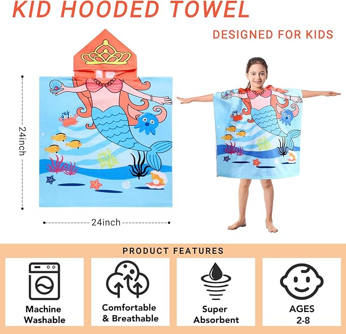 - ?Suitable & Extra Large Size?A large size of 60*120cm ( 24*47 inch) makes this kids hooded towels suitable for toddlers, girls, boys and baby, whose hight is under 140cm (55 inch), allowing plenty room for kids growth. We made the wearable blanket with bright colors and moved the hood to the center, can fully wrap your little child.