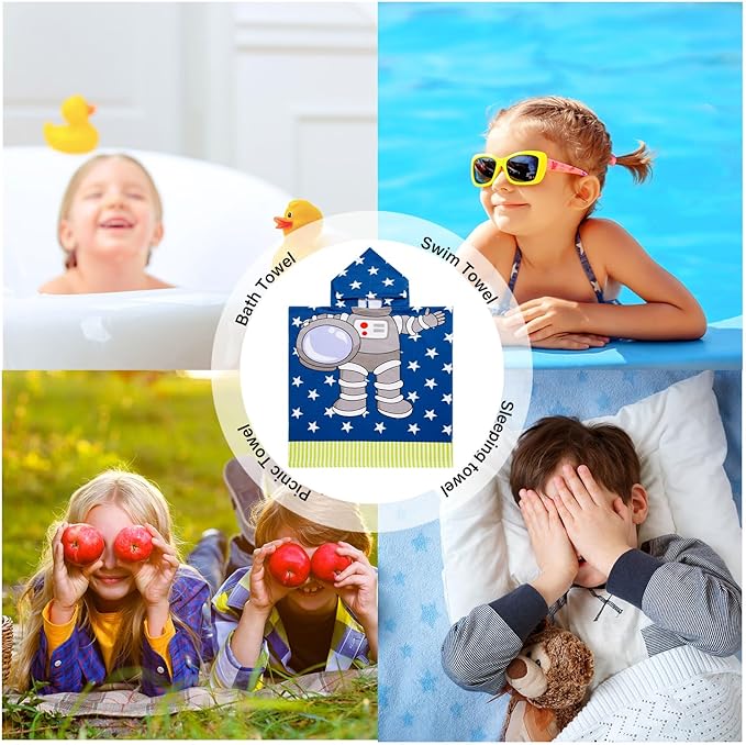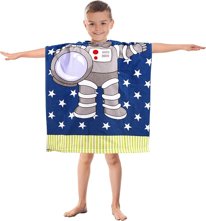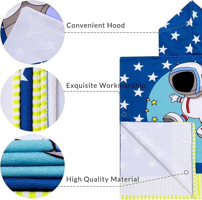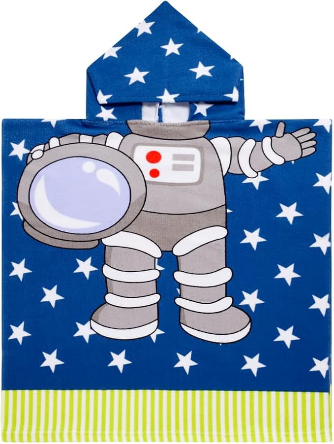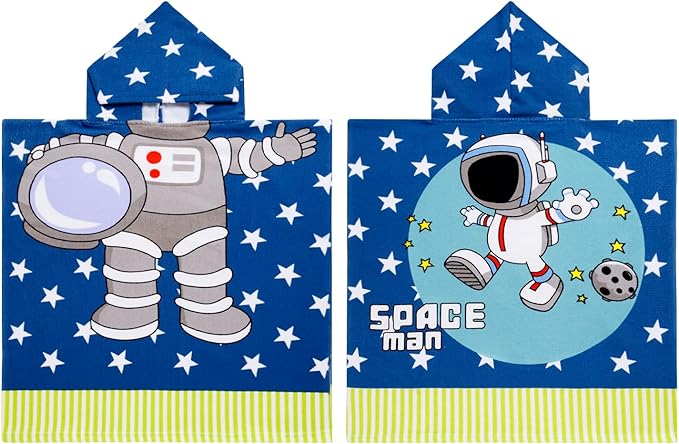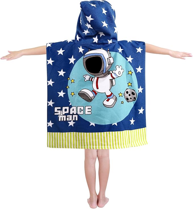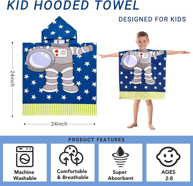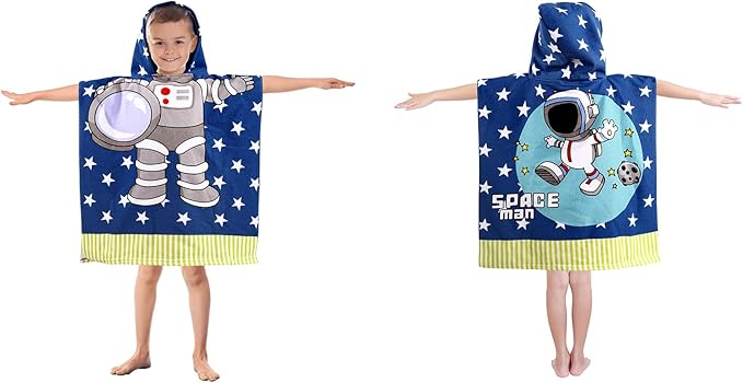 Kids Astronaut Hooded Beach Towel Boys Cute Poncho Pool Towels with Hood 24*47 in Soft Microfiber Swim Cover-ups for Kids Ages 3-10 Thick Absorbent Cotton Hooded Bath Towels Wrap Bathrobe