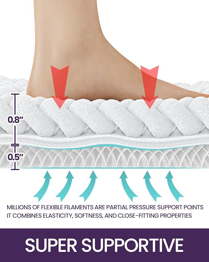 - Soft and Comfort: Featuring 0.8 inch thick chenille surface that offers a soft and luxurious feeling underfoot. The twist weaving design and high pile enhance its plushness, while it soothes and warms your feet, shielding them from the cold floor beneath