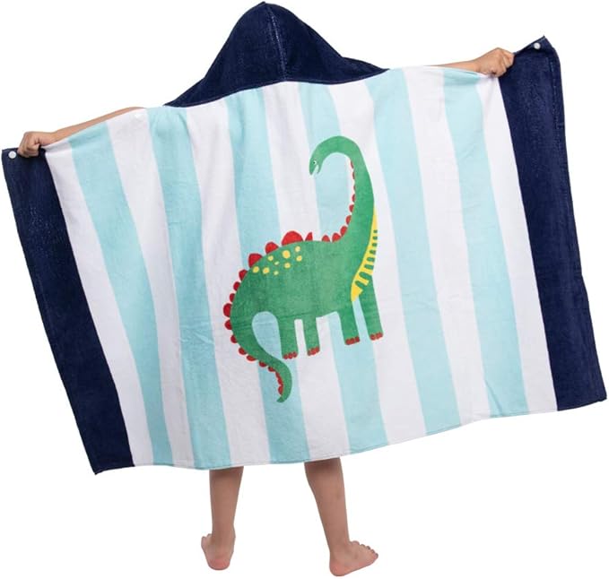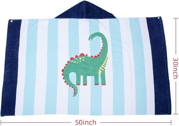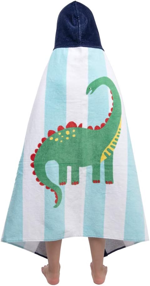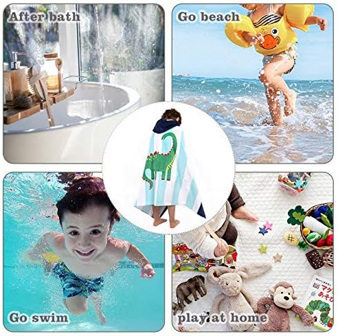 Kids Hooded Bath Beach Towel Girls Boys, Super Absorbent & Soft Towel Poncho with Cute Design, 30 x 50 Inch After Pool Wrap Towel with Hood (Dinosaur)
