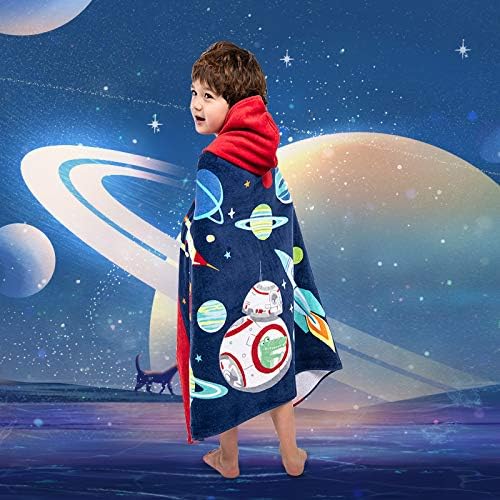 Kids Hooded Bath Beach Towel Girls Boys, Super Absorbent & Soft Towel Poncho with Cute Design, 30 x 50 Inch After Pool Wrap Towel with Hood (Starry Sky)