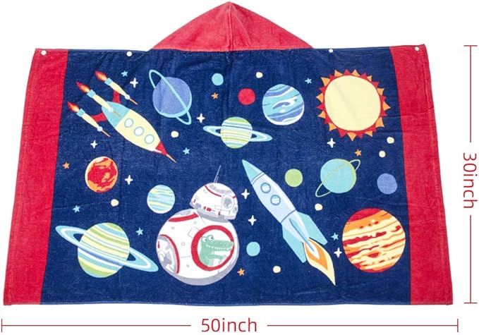 - [OVERSIZE SIZE KIDS TOWEL] : A hooded towel bath wrap measuring 50" x 30" with a 10" x 10" hood. Suitable for toddlers and children ages 3-12, fully covered when they need to change at the beach or pool.Machine washable and no fade.