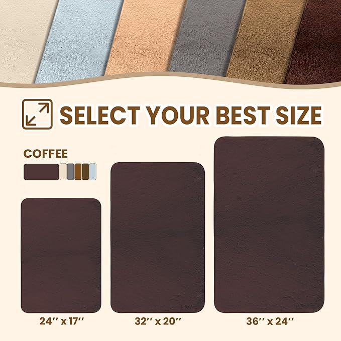 TECHMILLY Fluffy Tufting Bathroom Rug Mat 36x24, Absorbent Thick Non Slip Microfiber Mats, Quick Dry Machine Washable Bath Rug for Bathroom Floor, Bathtub and Shower, Brown