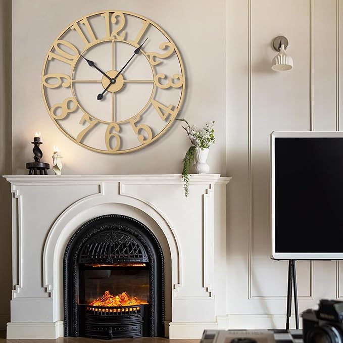 - [Modern Clock] The large metal clock has a hollowed-out retro design. The strength and retro appearance of the Roman wall clock are ensured by the use of high-quality materials in the handcrafted, solid iron frame.