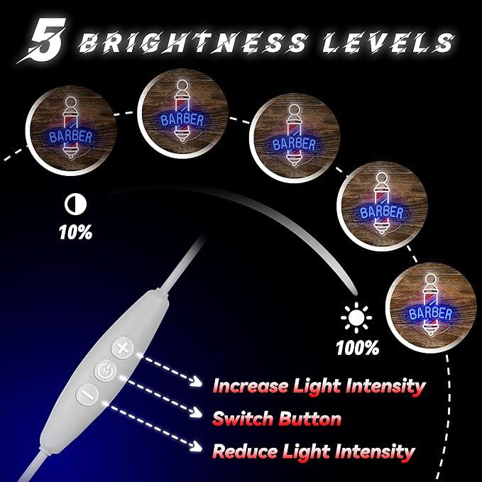 - Safe Material and Bright Decoration: This Barber Led neon light is made of safe material that won't overheat even after prolonged use. The combination of clear acrylic backing and colored neon tubes adds to the visual appeal, even in brightly lit scenes.