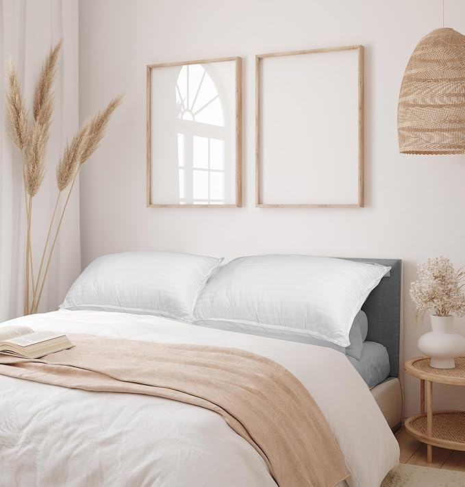 ZUPERIA Pillows Queen Size Set of 2, Satin Stripe Hotel Pillows Premium Down Alternative Cooling Hotel Quality Pillows for Back, Stomach and Side Sleepers