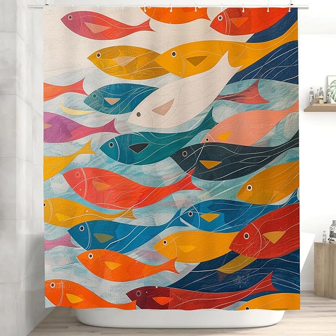 Fish Shower Curtain for Bathroom Abstract Swiming Fishes Shower Curtains Home Bathroom Bathtubs Fish Decor Polyester Shower Curtain Waterproof Washable Durable 12 Hooks 72"x72"