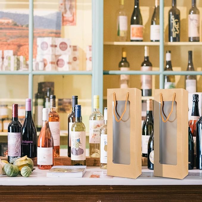 Cyblinia 20 Pack Wine Gift Bags with Window 4.9 x 3.6 x 14.2 Inch Paper Wine Bags Wine Carrier Bags Shopping Bags with Handle for Wine Bottle and Gifts,Wedding, Birthday, Christmas