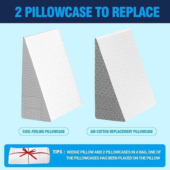 - EXTRA FREE PILLOWCASE:We also provide air cotton replacement pillowcase Two pieces of pillowcases are great for you to replace in different seasons (1 wedge pillow and 2 pillowcases in a bag, one of the pillowcases has been placed on the pillow)