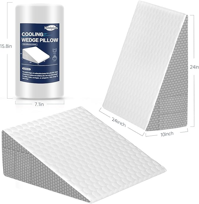 - ERGONOMIC FOAM WEDGE PILLOW: The MILDPLUS Bed Wedge Pillow is scientifically designed with 30° incline to provide 10 inches of height support The cooled gel memory foam top and high-density foam core can be used for back support or as a knee wedge pillow