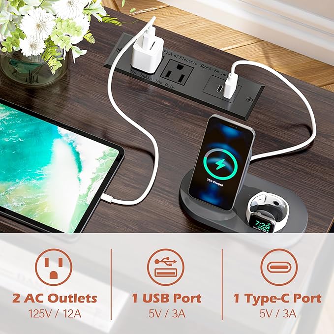 - 【Get 2 At Once】: Doubling your charging happiness by getting these end tables set of 2. After all, no one hates to get more power outlets. Imagine plugging in your phone or watch before sleeping, charger station is just within your reach. Plus: Contain patent pending drawer slide