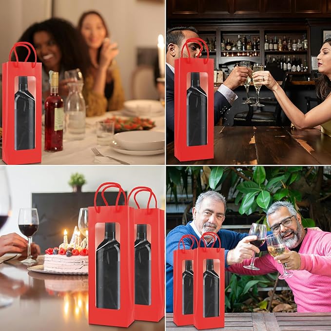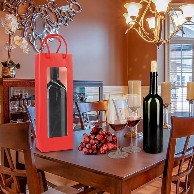 - 3.What You Will Get:The package includes 20 pieces red wine bags with window and handle,which are intended for wine bottles or other small decorations.